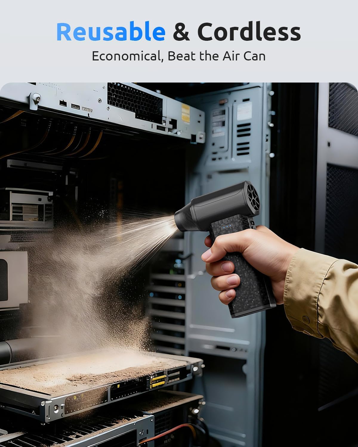 X113 Elektrischer Luftbläser 110.000 Umdrehungen/Min – Hochleistungsmotor mit 120 W, wiederaufladbarer Air Duster 2× 2500 mAh, 3 einstellbare Geschwindigkeiten, USB-C, für PC, Tastatur, Auto