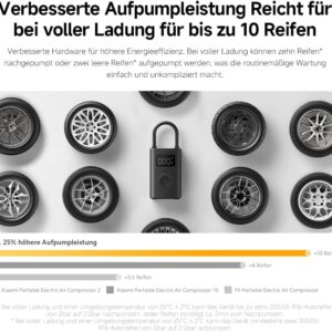 Der Xiaomi Portable Electric Air Compressor 2 ist die kompakte Lösung für alle, die unterwegs oder in der Werkstatt schnell und zuverlässig Reifen, Bälle oder andere Objekte aufpumpen müssen. Mit einem maximalen Druck von 150 PSI (10,3 bar) und sechs voreingestellten Modi bietet dieser elektrische Kompressor die Flexibilität, die Kfz-Mechaniker, Fahrradwerkstätten, Hobby-Schrauber und mobile Handwerker benötigen. Dank der USB-C-Ladefunktion und einer Akkulaufzeit für bis zu 10 Reifen ist er der ideale Begleiter für Pannenhilfe und regelmäßige Wartungsarbeiten.