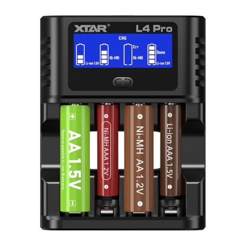 XTAR L4 Pro Ladegerät für AA AAA Batterien - Schnellladegerät Kompatibel mit NI-MH & Li-Ionen Akkus - Intelligentes Ladegerät mit Überladungsschutz für 1.2V & 1.5V Batterien