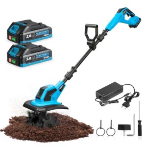 Yofidra Akku-Bodenhacke Gartenfräse - 600W Motorhacke mit 23cm Arbeitsbreite, 17cm Arbeitstiefe, LED-Anzeige, 2x2.0Ah Akku, 4x12 Zähne Bodenfräse für Bodenbearbeitung, Elektro-Tiller für Garten