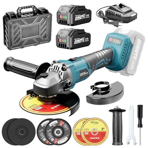 Yofuly Akku Winkelschleifer 125mm fur Maa-kita 18V Batterie, 3 Gang 9000RPM Akku Flex mit 2 * 4.0Ah Batterie, Trennschleifer mit 2 Schleif, 2 Fächer, 2 Trennscheiben für Polieren/Schleifen/Schneiden