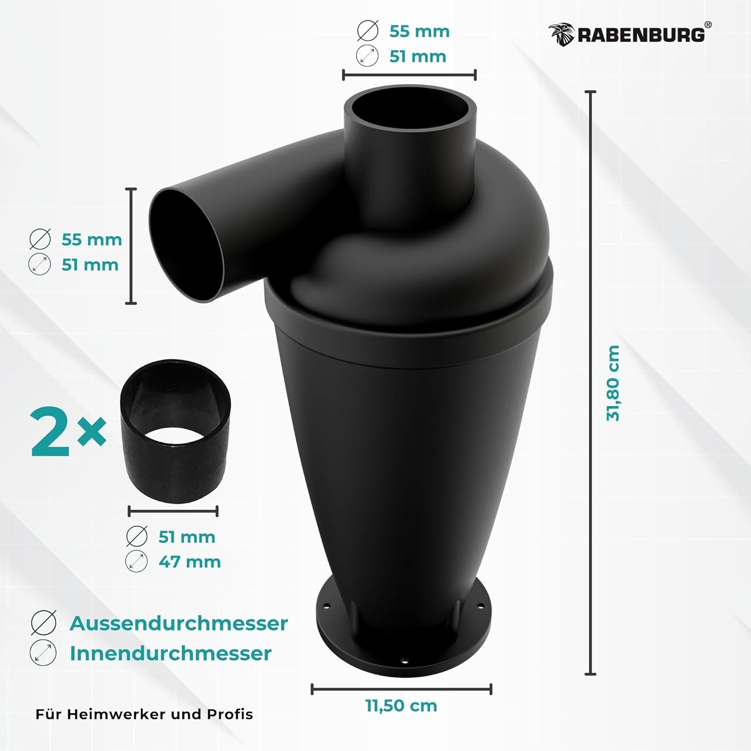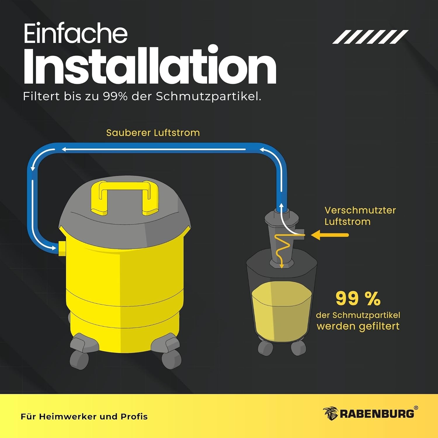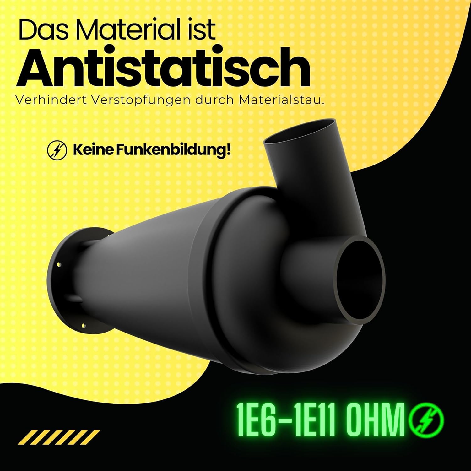 Ein Zyklonabscheider sorgt dafür, dass Staub und Schmutz durch die Fliehkraft bereits vor dem eigentlichen Filter der Absauganlage abgeschieden werden. Mit einer guten Bewertung von 4.3★ ist dieses antistatische Modell ideal für die industrielle Absaugung sowie für Arbeiten mit Holz, Textilien oder im Baubereich geeignet. Dadurch wird die Lebensdauer Ihres Hauptfilters signifikant verlängert und die Saugleistung bleibt konstant hoch.