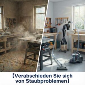 - Direkte Arbeitserleichterung: Verhindert Saugkraftverlust durch verstopfte Filter selbst bei großen Mengen an Hobelspänen oder Baustaub.