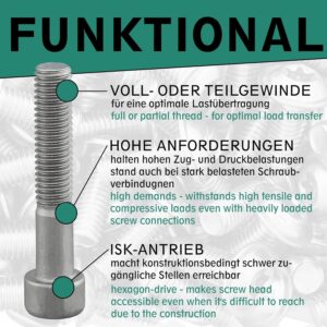 - Normgerecht nach DIN 912 / ISO 4762 – Passt zu allen gängigen Werkzeugen und Aufnahmen, standardisierte Qualität für verlässliche Montage